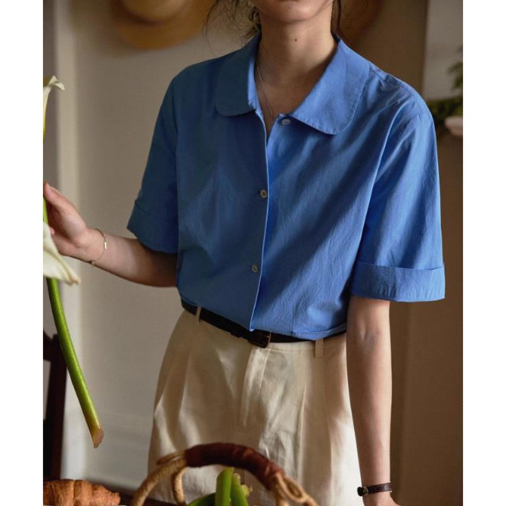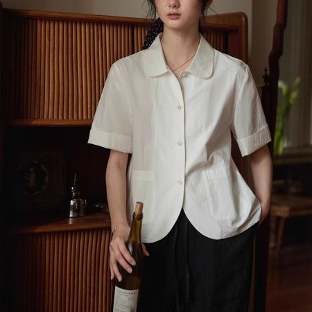 Long-Staple Cotton Rolled-Hem Mid-Length Sleeves Simple Versatile Shirt